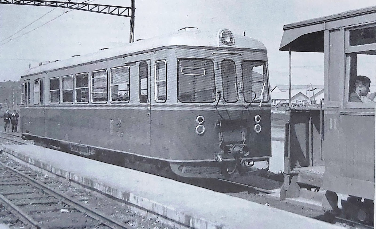 | En aquel "festival" de automotores que se organizó para cubrir los servicios entre Avilés y Pravia, uno de los primeros que llegó fue el curioso AEG-Siemens AM 1 del Vasco Navarro que aquí fue matriculado como AMG 1. En la imagen aparece junto a un Ferrostaal (colección Javier Aranguren) Llegaron también -bastante deteriorados- los dos "Mariano de Corral" servidos en 1936 por esta empresa al Astillero-Ontaneda y que luego permanecieron hasta 1955 en el Fuencarral-Colmenar Viejo: |