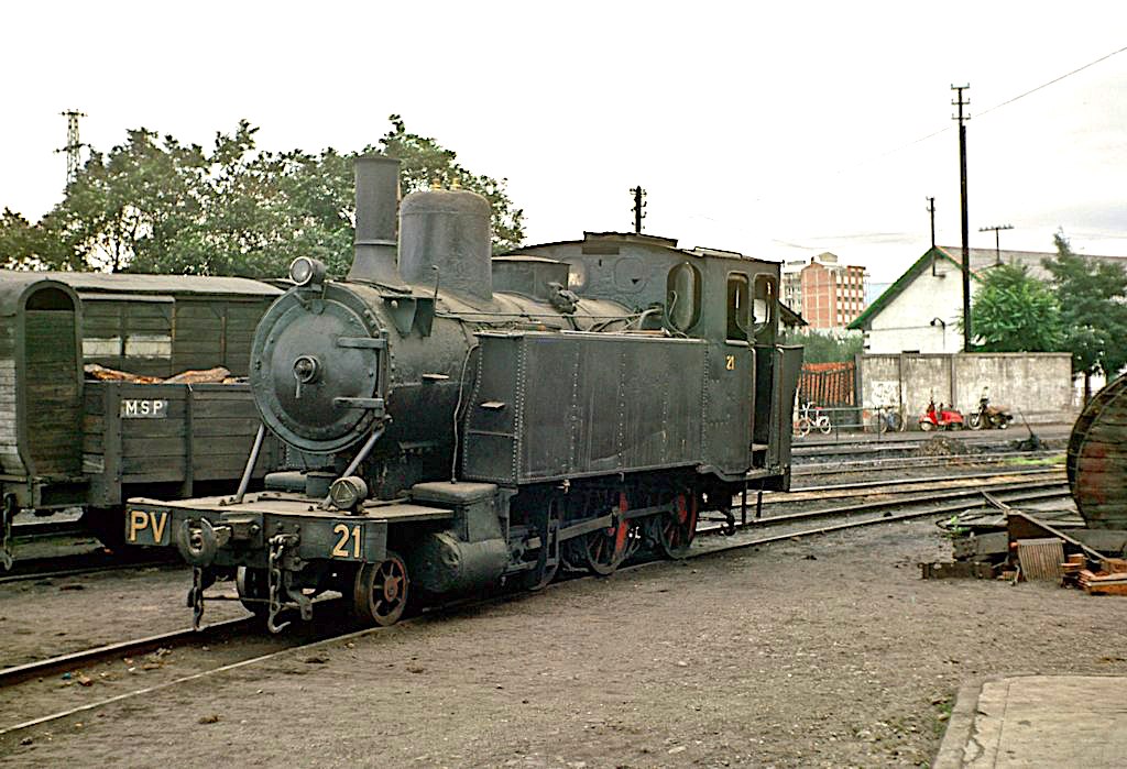 | La PV 21 traabajando en Ponferrada, probablemente a principios de los setenta (tomada del blog El Ferrocarril de Ponferrada a Villablino) |