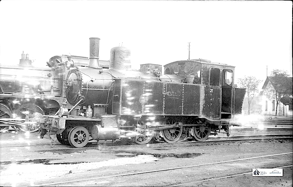 | La 21 del Ponferrada a Villablino (ex SMV 1 "Ribadeo") fotografiada probablemente en Ponferrada por Gustavo Reder (Archivo Histórico Ferroviario del Museo del Ferrocarril de Madrid (AHF/MFM) |
