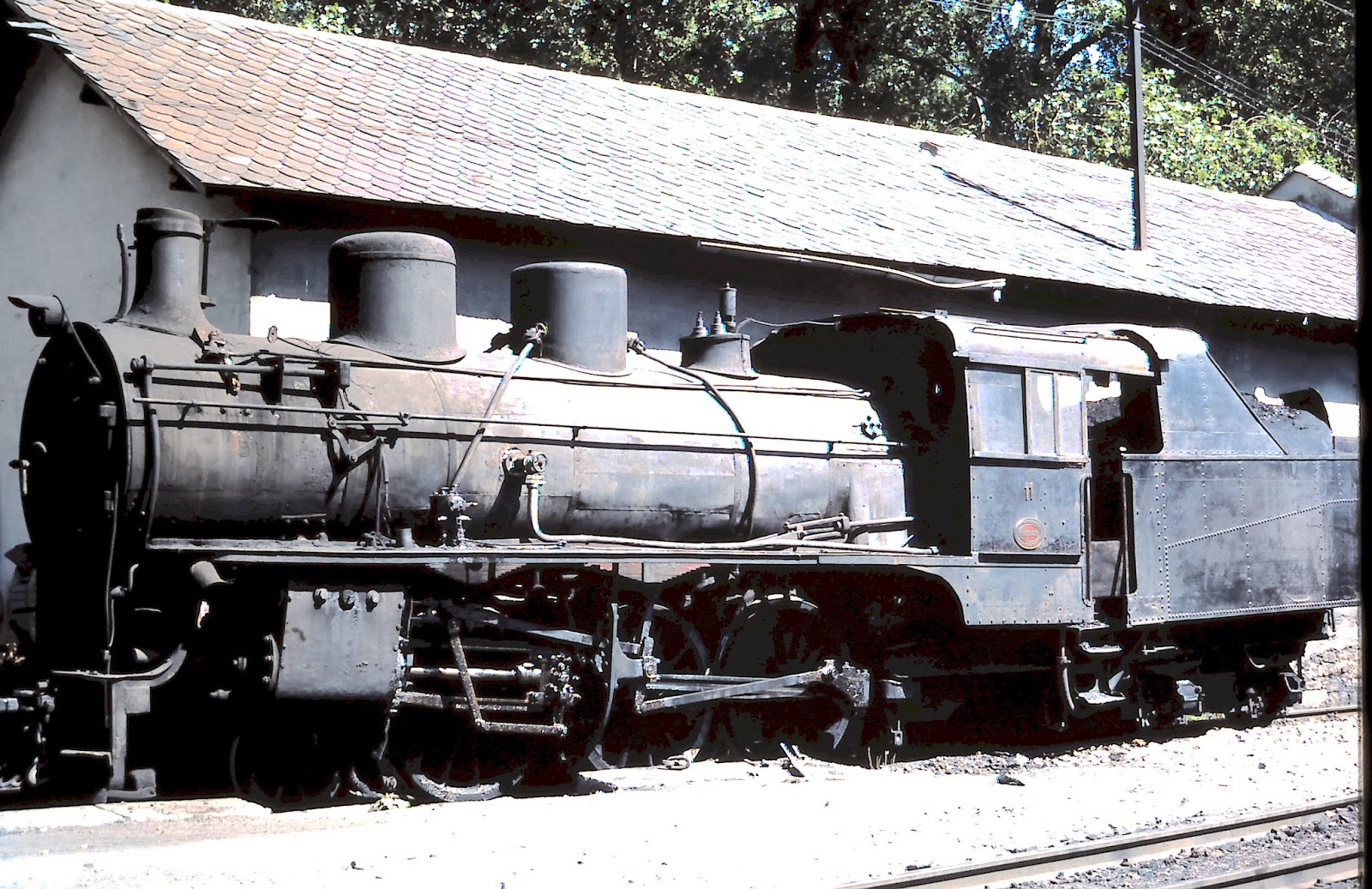 | La PV 2 "Conde de los Gaitanes" recién revisada y pintada en el depósito de Ponferrada. El sabor norteamericano es inconfundible (L. G. Marshall) |