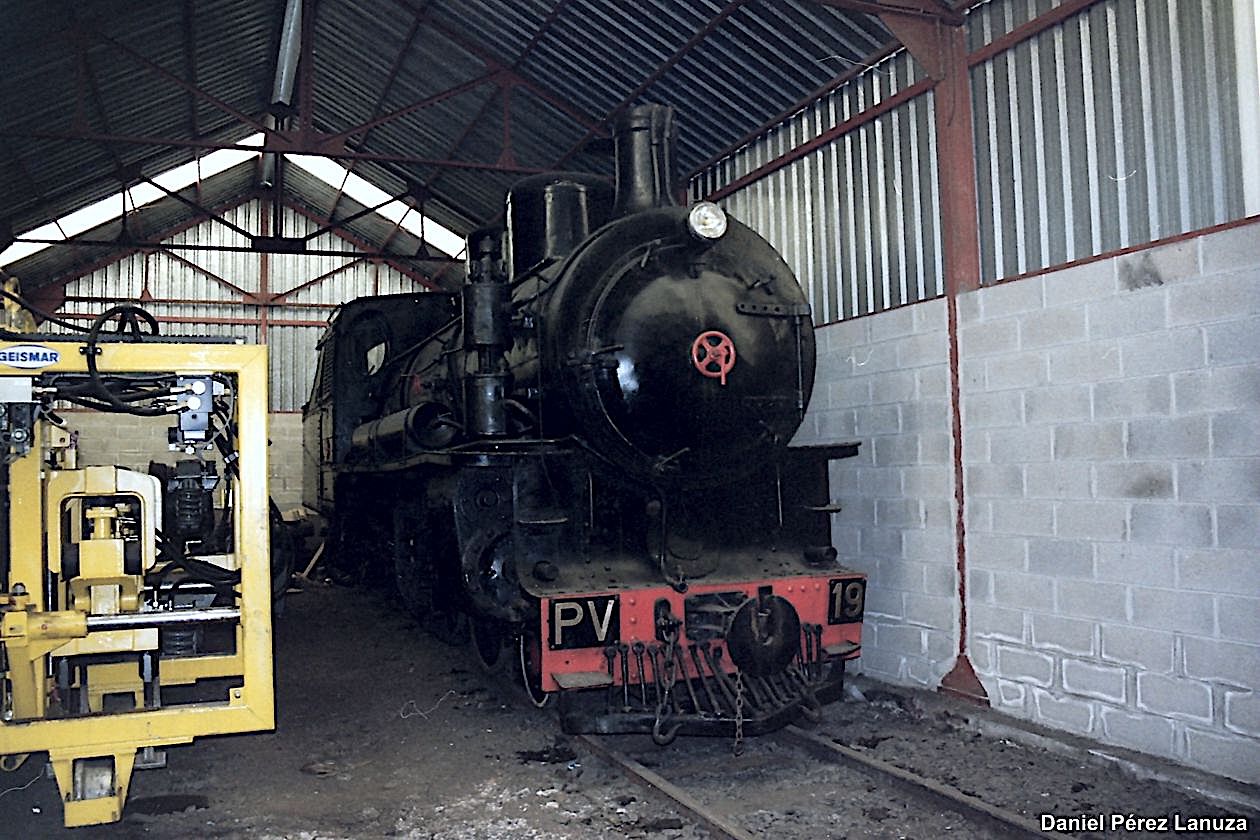 Como veíamos en la entrada anterior, la llegada de la tracción diésel al PV en 1981 supuso la retirada progresiva de sus locomotoras de vapor, si bien alguna de ellas había sido apartada previamente. En esos primeros años ochenta ya quedaron fuera de servicio algunas de las Baldwin que hacían las maniobras en los ramales de Villaseca y Caboalles. Según transcurría ese decenio las retiradas continuaban, y así en 1989 solo continuaban operativas las 14, 19 y 31 que se apagaron ese mismo año.