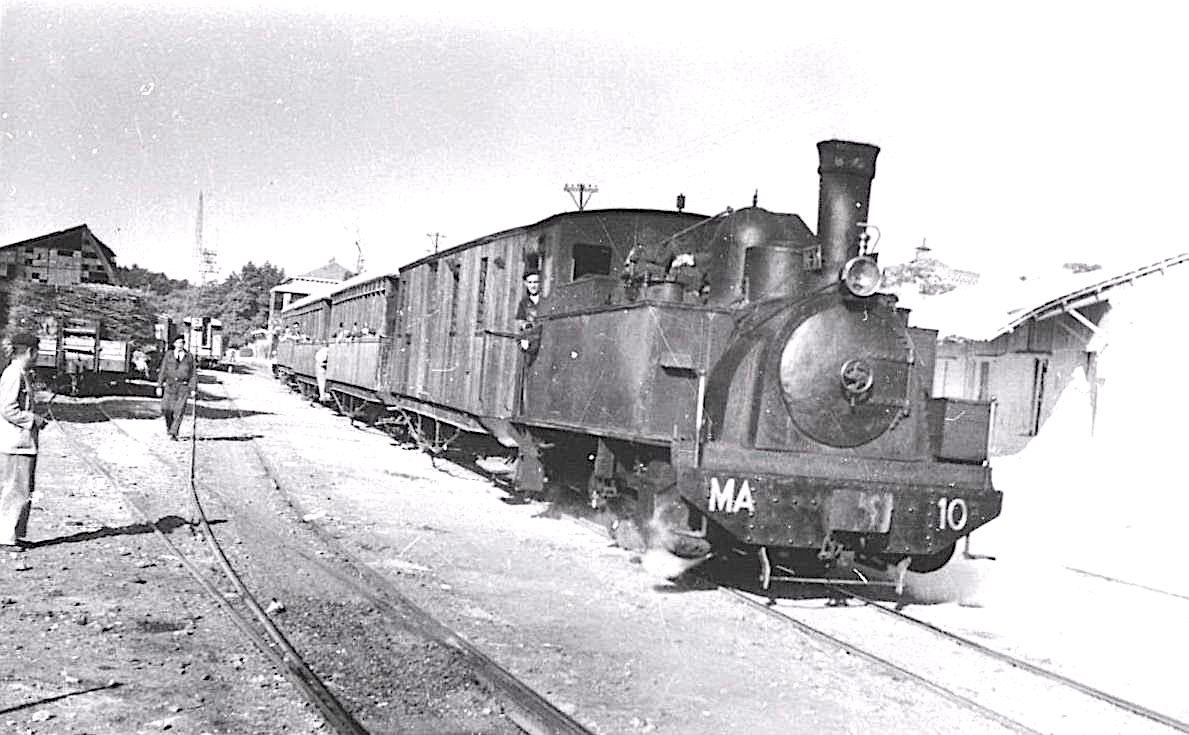 | La 10 saliendo de Madrid con su tren en fecha desconocida (autor desconocido) |