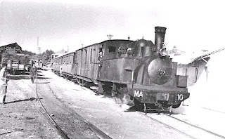 Concebido en un principio como un medio de transporte hacia Madrid de material de construcción, el que llegaría a denominarse Ferrocarril del Tajuña fue expandiéndose hacia el este de la provincia para atender también al transporte de viajeros y mercancías agrícolas, y todo ello en medio de muchas vicisitudes administrativas, económicas y de cambio de titularidades. A partir de 1912 la compañía entonces titular -denominada ya Ferrocarril del Tajuña- mostró su decidido propósito de adentrarse en La Alcarria para, a través de Molina de Aragón, llegar hasta Caminreal y conectar allí con el proyectado ferrocarril de vía estrecha hacia Zaragoza. Fue algo que no se llegó a conseguir, entre otros motivos, por la baja rentabilidad económica del territorio atravesado y de este modo, la vía y el servicio ferroviario quedaron finalizados en 1921 en la localidad alcarreña de Alocén. Diversas circunstancias de posguerra llevaron al cierre de los tramos más alejados hasta que en 1953 fue suspendido definitivamente el servicio de viajeros y pasó a ser un ferrocarril industrial, dedicado casi en exclusiva en el transporte de clinker de la compañía Valderribas. Ésta acabó siendo su cliente exclusivo, lo adquirió en 1964 y recuperó su denominación de Ferrocarril del Tajuña. Ya en 1969 se clausuró el tramo de Madrid a Vicálvaro al tiempo que mejoró la vía entre Vicálvaro y la fábrica en Morata de Tajuña. Después, en 1997, se clausuró ese último tramo al tiempo que la explotación de la vía férrea pasó a la Comunidad de Madrid, que utilizó el trayecto entre Vicálvaro y Arganda para la construcción de parte de la línea 9 del metro madrileño. Una historia interesante pero realmente compleja que queda perfectamente relatada y documentada en el libro "El Ferrocarril del Tajuña" de César Mohedas y José Miguel Cámara. Sin él me hubiera resultado muy difícil escribir esta entrada.