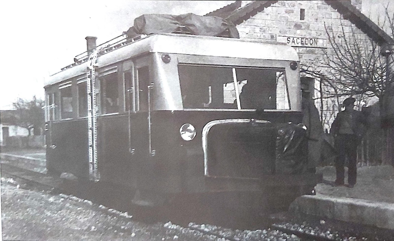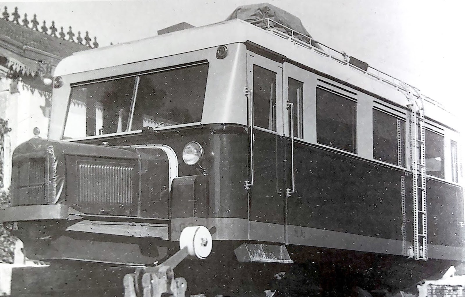 | Esta foto del mismo vehículo tomada el año siguiente por Henry Margot nos muestra su interesante librea (Del libro "El Ferrocarril del Tajuña") |
