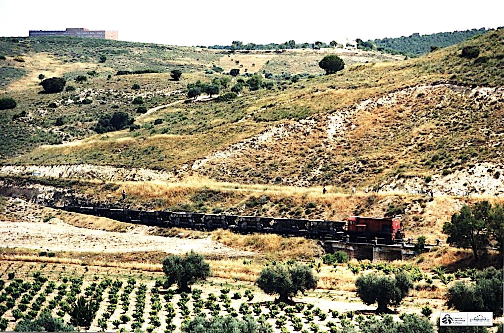 | Una de las GECo (luego "Tajuñas" con un tren de tolvas (AHF/MFM. Autor: Justo Arenillas) |