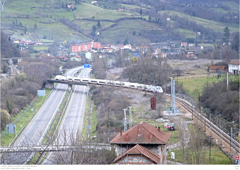 | Una rama 130 asegurando un servicio "Alvia" entre Madrid y Gijón pasando por las cercanías de Busdongo (MGE/Talgo) |