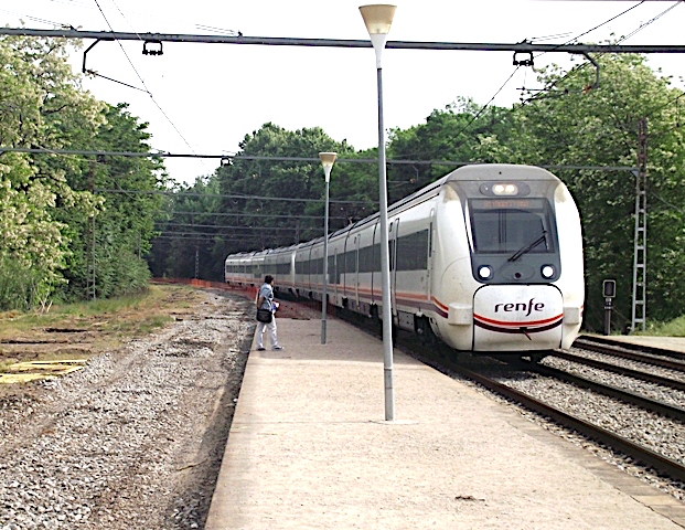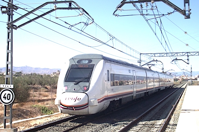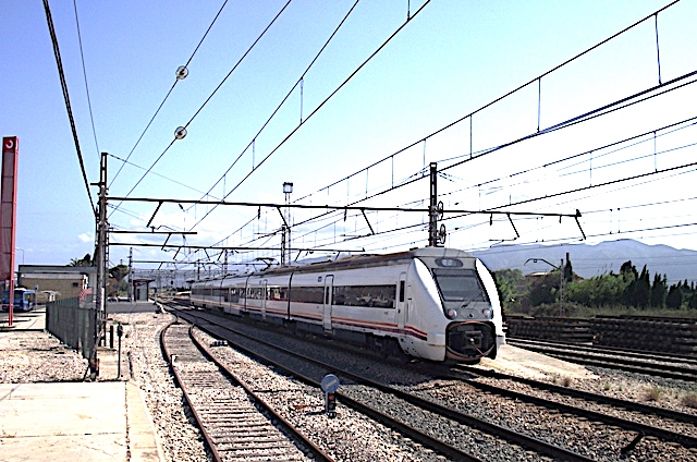 | Un 449 asegurando un servicio Alicante-Ciudad Real pasa por el apeadero de Sant Vicent-Universitat (David Cantero Duxans) |