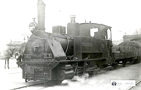 | Los dos automotores MAN junto a la locomotora Batignolles (Jordi Ibañez) |