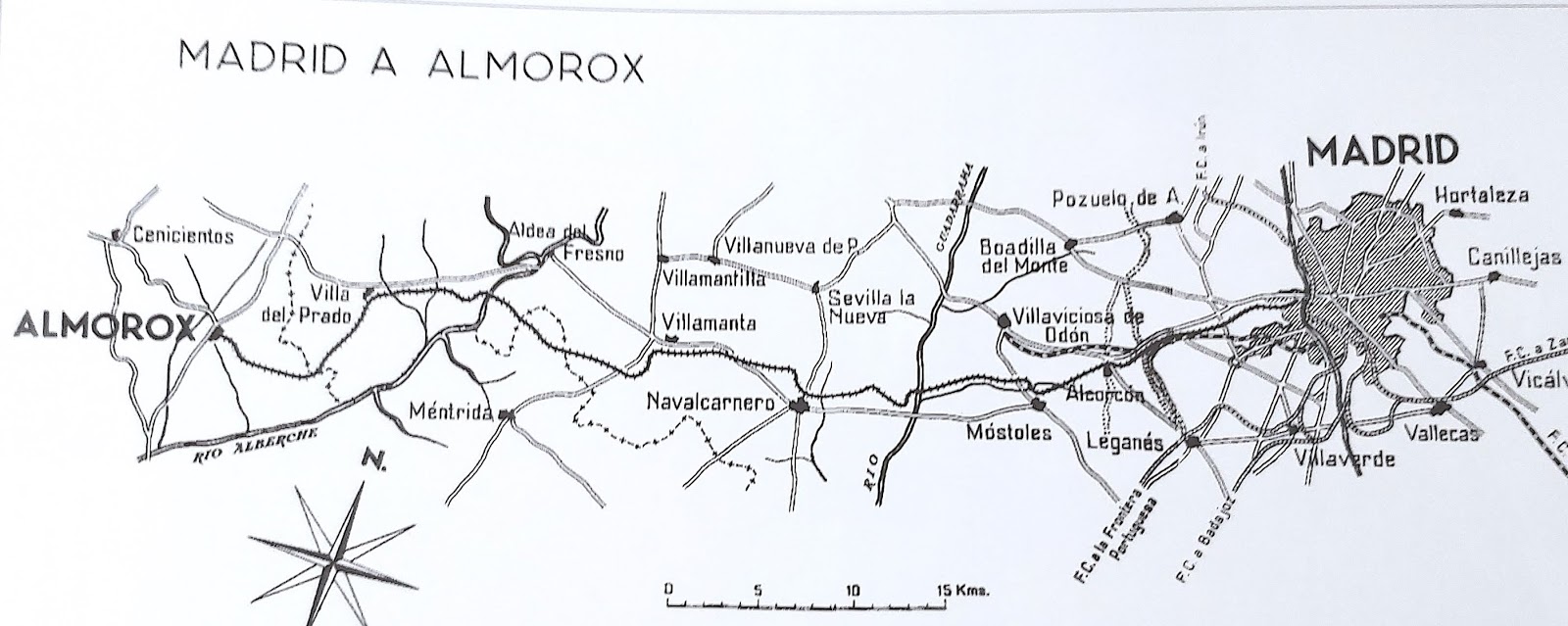 Tal como hemos visto en las entradas anteriores dedicadas a los ferrocarriles de Madrid a Arganda y de Madrid a Colmenar, a finales del siglo XIX había un gran interés por conectar ferroviariamente Madrid con poblaciones cercanas, tanto para facilitar el acceso a la capital de sus habitantes como para efectuar el transporte de distintos productos de estas zonas. Como en casos anteriores, fue también el capital de origen belga el promotor de la conexión de Madrid con Navalcarnero, a unos 30 km al oeste de Madrid. El ferrocarril se fue extendiendo hacia el oeste con el propósito de llegar a poblaciones como Talavera de la Reina o Arenas de San Pedro pero, como en tantas otras ocasiones, las dificultades económicas no permitieron pasar de Almorox en la provincia de Toledo. Tras estar muchos años explotado por EFE y FEVE fue suprimido en 1970 y utilizado en sus primeros tramos para la expansión del suburbano madrileño.