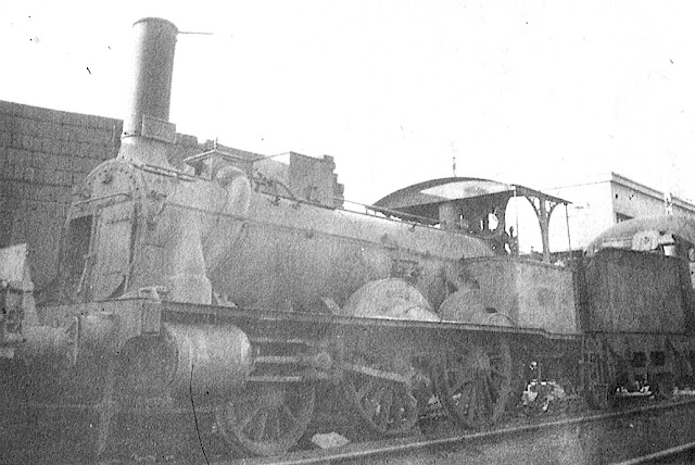 Probablemente la nº 14 "Vasco N. de Balboa" ya esperando el desguace en fecha y lugar no determinados (autor desconocido/tomado del libro "Locomotoras de MZA")