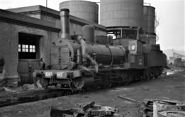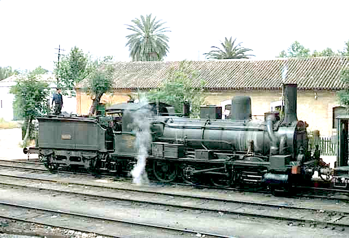 La 040-2039 "Almadén" en Murcia en 1963, un año antes de ser desguazada, aunque ya inútil ( autor desconocido/a través de Pacheco/Forotrenes)