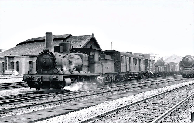 | La 040-2083 en la estación de Jaén en 1965. Es curiosa esta ubicación porque en la documentación que he consultado no hay ninguna referencia a su presencia en esta ciudad. A través de las informaciones de varios aficionados llego a la conclusión de que se trata con casi toda seguridad de una de las tres que estaban en Arcos de Jalón. A la 2083 la quedaba ya muy poca vida. Fue desguazada en 1967 o 1968. (Foto: Ch. Schnabel/Col. JP, Vergiez) |