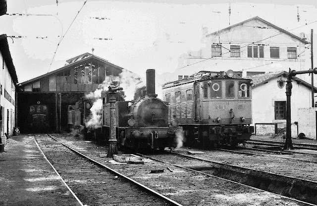 De nuevo la 0202 en el depósito de Irún en 1963 junto a una 7000 (autor desconocido/cortesía J.A. Méndez Marcos)