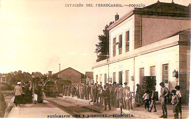 Este -en principio- temprano desguace de toda la serie entre 1940 y 1955 puede justificar, como apuntaba antes, la práctica ausencia de documentación gráfica, excepción hecha de la imagen del álbum motor de RENFE de 1947 y de las dos imágenes anteriores de los tiempos de la MCP facilitadas por Aitor F. Baños. Sin embargo, gracias también a la atención de Juan Antonio Méndez Marcos, me es posible incluir esta foto en la que, según la documentación que la acompaña, aparece la 203 a finales del siglo XIX en la estación de Porriño.