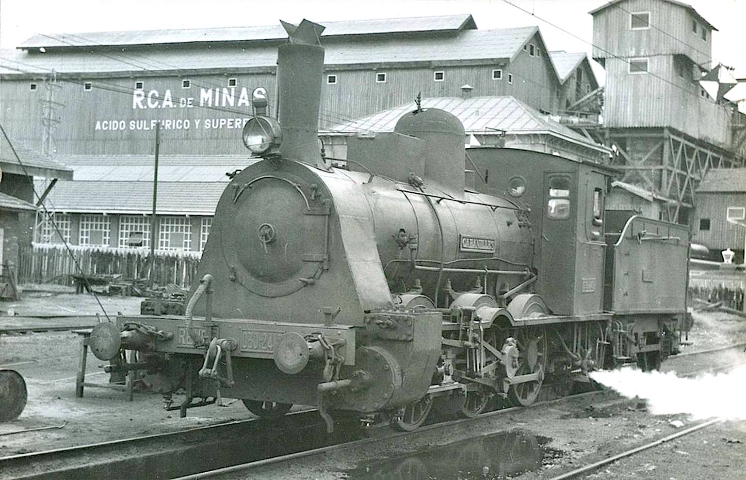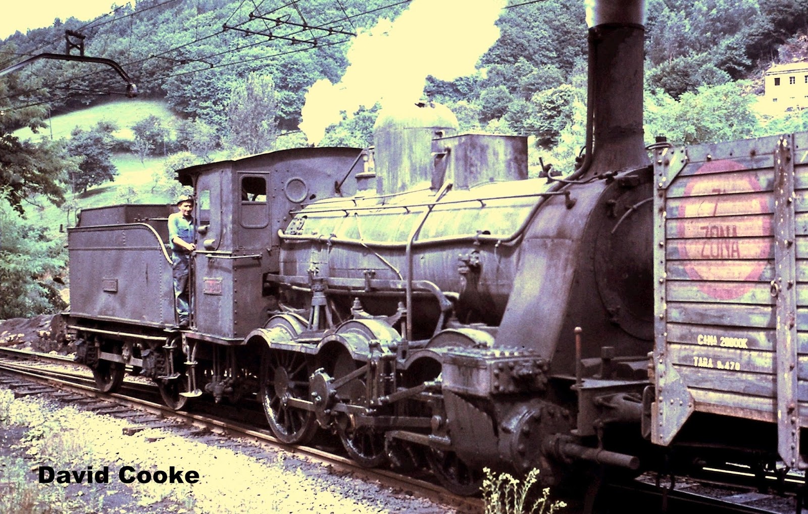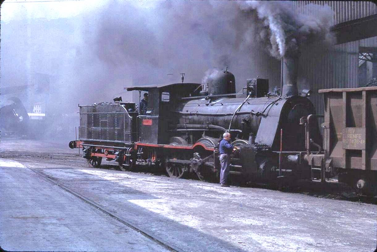 | Una locomotora de esta serie fotografiada en explotaciones mineras de Asturias en mayo de 1967 (David Cooke/cortesía Fernando Rodriguez) |