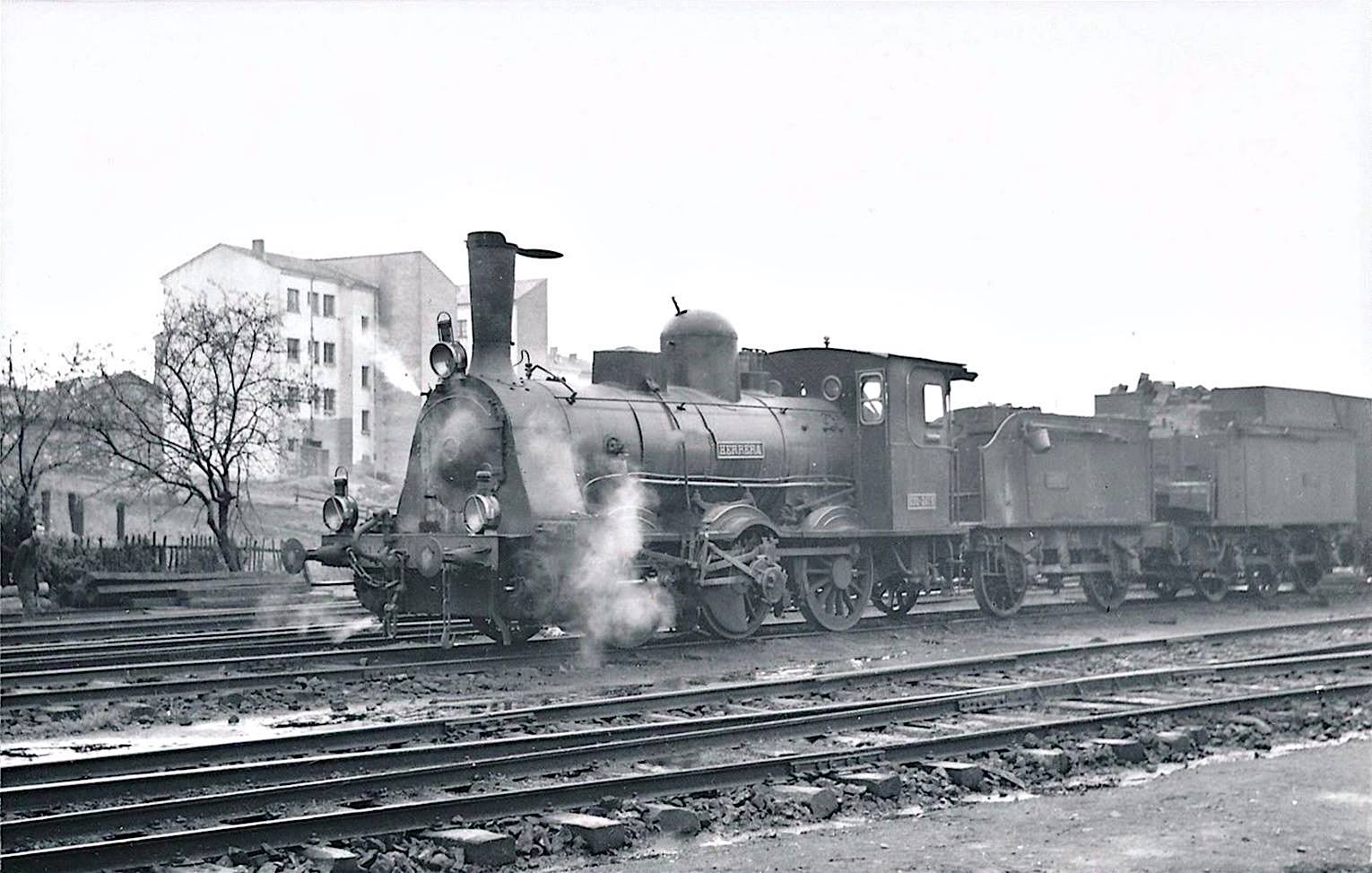 La Norte 1672 "Varela de Montes". De acuerdo con Manuel González Márquez esta foto es la que, recortada, figura en el álbum de RENFE de 1947 como representante de esta serie, por lo que debió ser tomada alrededor de 1947. Por su parte, Javier Fernández la localiza en el depósito de Oviedo. (autor desconocido/cortesía J.A. Méndez Marcos)