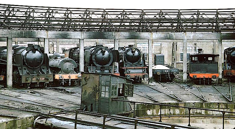 | El depósito de Ortuella en 1895. Destaca la nº 12 "Santurce" (fondo Rodríguez Camarero) |