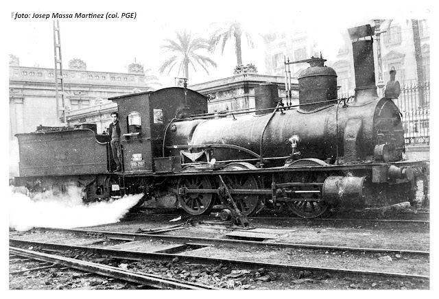 El origen de estas locomotoras se remonta al año 1882 cuando la factoría sajona Hartmann fabricó las primeras diez máquinas de esta serie a petición de la compañía del Ferrocarril de Barcelona a Tarragona y Francia (TBF). Como hemos comentado en otras entradas esta compañía se había constituido en 1875 por la unión de las del Tarragona a Barcelona y del Barcelona a Francia. Además de recibir las locomotoras de estas primeras compañías, la TBF adquirió otras, tales como la serie de rodaje 120 numerada 23 a 28 en 1877, las de rodaje 021, 109 a 120, también en 1877, o las 040 213 a 226 en 1878. Todas ellas las hemos visto en este blog y tenían la particularidad de que habían sido construidas sin excepción por la factoría inglesa Sharp. Pues bien, con las locomotoras que hoy tratamos, la TBF rompió esa tradición en una época en que Hartmann empezaba a entrar con fuerza en el mercado español.