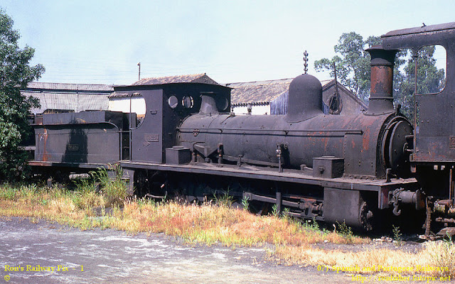 | Y también lo hizo Trevor Rowe, cuando una de nuestras locomotoras arrancaba en la estación de Huelva-Odiel con un pequeño tren probablemente hacia Fregenal de la Sierra. |