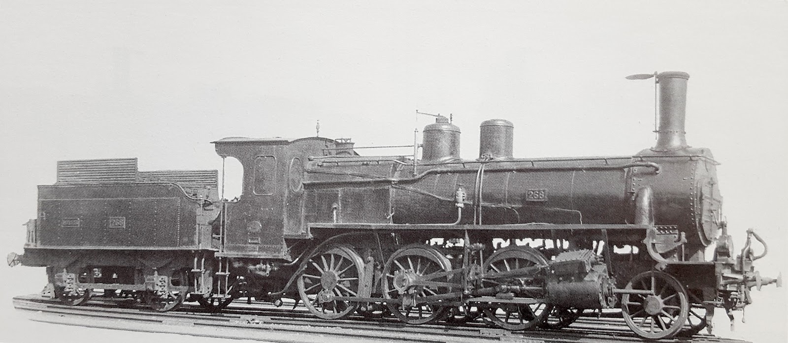 Una decena de años después, ya comenzado el siglo XX, la compañía se planteó el necesario aumento de potencia de algunas de sus series de locomotoras, ya que la situación económica no permitía nuevas adquisiciones. Para ello se realizaron entre 1905 y 1926, en los talleres de Málaga de la propia compañía, las transformaciones de 43 locomotoras: cuatro del tipo 120 a las que ya me referí en esta entrada, cuatro del 040 de las que también ya me ocupé en esta otra, y treinta y cinco del tipo 030. De éstas, doce eran las 030 del Marchena a Valchillón y veinte las del Puente Genil a Linares. Es posible en cualquier caso que la 268 fuera reformada por la propia RENFE, pues en la relación del parque motor del 1 de marzo de 1943 aún figura con el número 030-2410 y sus características primitivas.