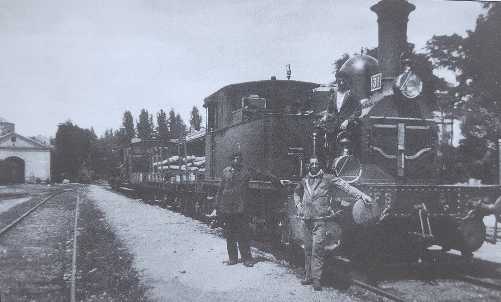 La 31 con su pareja de conducción. La foto parece que se tomó a finales de los años cuarenta en Soria aunque, como se ve, la locomotora no disponía aún de la numeración RENFE (autor desconocido)