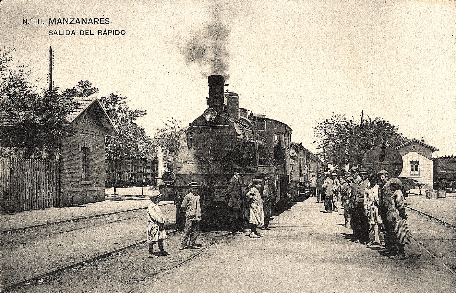 | La misma MZA 664 aparece ya en la estación de Manzanares (AHF/MFM. Tarjeta postal Hauser y Menet) |