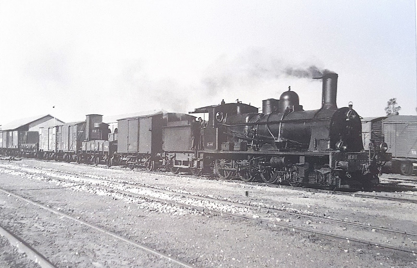 Una de las locomotoras de esta serie estacionada en Utrera en agosto de 1951 (autor desconocido)