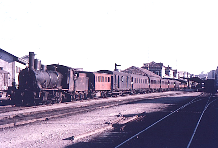| En la misma estación y en primer plano una 130 del "Great Southern". A su izquierda dos locomotoras de la serie tratada en esta entrada (AHF/MFM. Autor: Karl Wyrsch) |