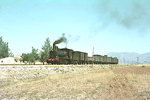 | En febrero del 66, Karl Wyrsch visitó la estación de Serón, en la línea de Baza a Lorca y obtuvo interesantes imágenes de estas locomotoras. En ésta aparece la 040-2373 (AHF/MFM) |