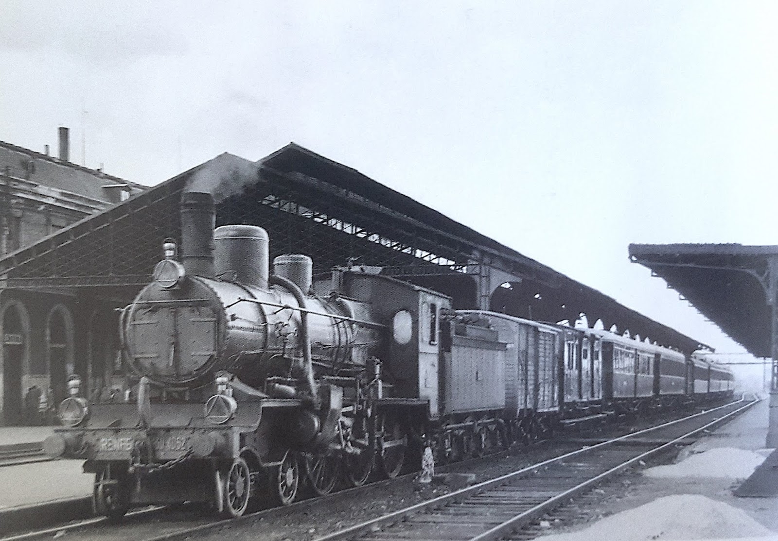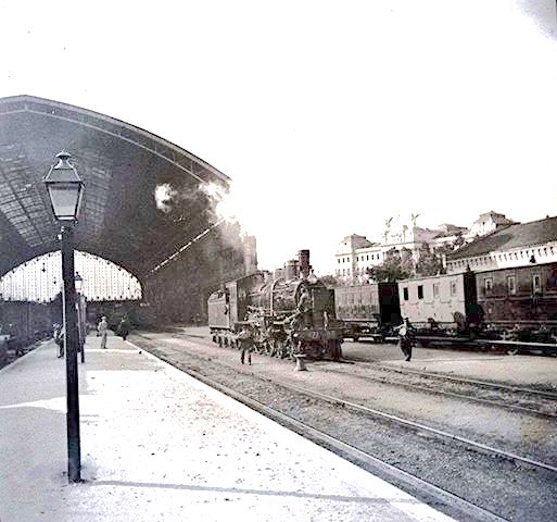 Madrid-Atocha, años diez del siglo XX. La MZA 815 posa casi en solitario junto a coches de dos ejes y estribo corrido. Las ochocientas junto con las seiscientas permitirían a MZA la utilización progresiva de coches de bogies de mayor capacidad y mejores prestaciones (autor desconocido/cortesía J. A. Méndez Marcos)