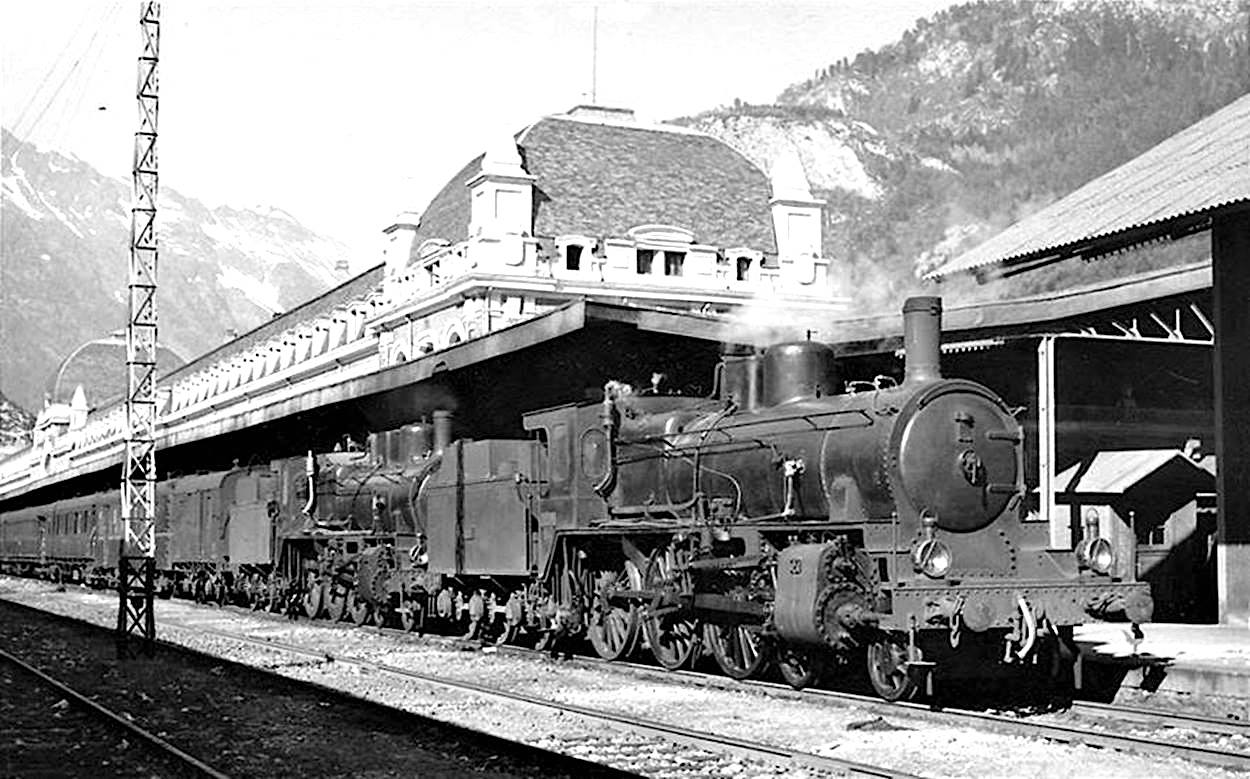 | Doble tracción de "1900 grandes" del segundo grupo en Canfranc (autor desconocido/cortesía J. A. Méndez Marcos) |