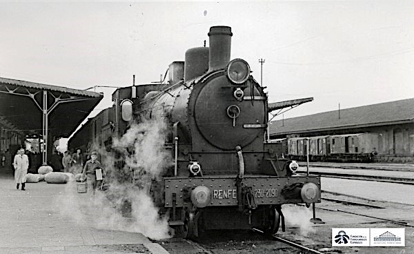 En una imagen mucho más moderna tomada en Tarragona en 1961 aparece la 230-2075 (ex Norte 1980), primera de la serie (Ch. Firminger)