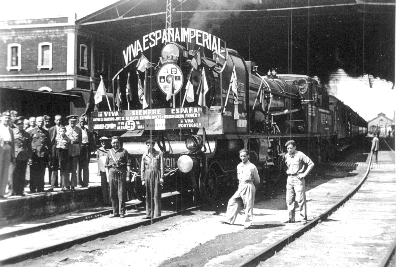 La 3011 en la estación de Zaragoza en 1937 en cabeza de un tren "imperial" (autor desconocido/cortesía J. A. Méndez Marcos)