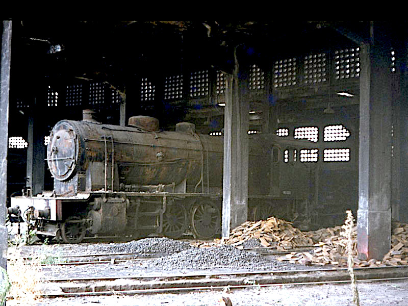 La 240-2081, ya en bastante mal estado, apartada en el depósito de Sevilla-San Bernardo en 1977 (Amoluc/Forotrenes)