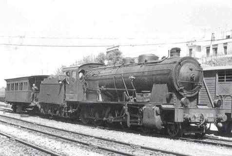 | Una locomotora de la serie en el depósito de Tortosa. Años sesenta (autor desconocido/a través de J. A. Pacheco/Forotrenes) |