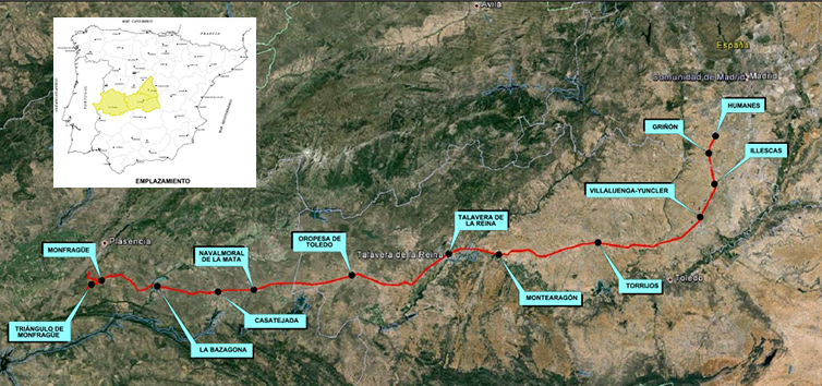 El tramo Humanes-Monfragüe cuenta con 230 kilómetros de longitud y forma parte de la línea de ancho convencional Madrid-Valencia de Alcántara, a su paso por las provincias de Madrid, Toledo y Cáceres, que conecta con la línea de alta velocidad entre Plasencia y Badajoz, actualmente en construcción.