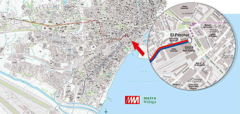El tramo Renfe-Guadalmedina del Metro de Málaga conecta el intercambiador de El Perchel-María Zambrano, donde confluyen las líneas 1 y 2 en servicio comercial desde julio de 2014, con la antesala del centro histórico y turístico de la capital malagueña, donde actualmente se ejecuta el tramo Guadalmedina-Atarazanas, que se extiende hasta la Alameda Principal.