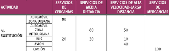 Hipótesis de sustitución modal de los diferentes servicios de Renfe utilizada para realizar el análisis, avalada por el Departamento de Economía del Transporte de la Universidad de Leeds.1.703 millones de ahorro
