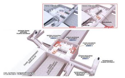 Las principales actuaciones consistirán en la adecuación de la estación para convertirla en plenamente accesible, mediante la instalación de dos ascensores para conectar andenes y vestíbulo, uno de ellos con salida a calle, escaleras mecánicas del vestíbulo a la calle, una nueva escalera mecánica en el andén 1, recrecido y prolongación de andenes y la instalación de elementos de encaminamiento en toda la estación.