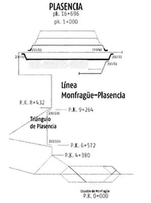 Adif Alta Velocidad ha licitado la redacción del proyecto constructivo de renovación de vía y adaptaciones del tramo de la línea de ancho convencional entre Monfragüe y Plasencia, en la provincia de Cáceres, lo que permitirá su conexión con la línea de alta velocidad Madrid-Extremadura. Esta modificación afecta también al tríángulo de Plasencia, vía que enlaza el tramo Monfragüe-Plasencia y la línea de ancho convencional Madrid-Cáceres.