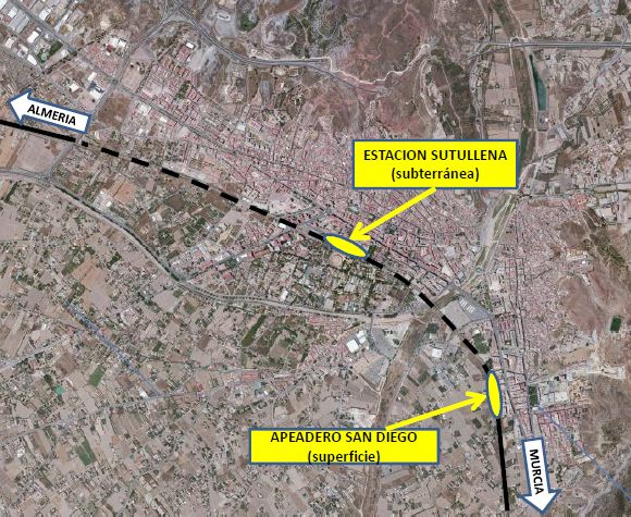 El ministro de Fomento presentó ayer en Lorca el proyecto de línea de alta velocidad Murcia-Almería a su paso por el tramo urbano de dicha ciudad murciana, que se resolverá mediante un trazado soterrado en la zona central de la travesía ferroviaria, que incluye una nueva estación subterránea, Sutullena.