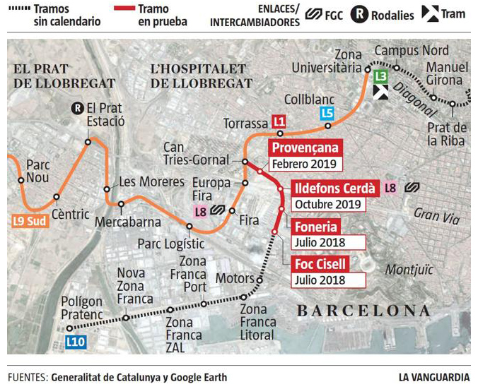 Transportes Metropolitanos de Barcelona, TMB, ha llevado a cabo, durante todo el mes de agosto, las pruebas previas a la puesta en servicio comercial en el recorrido entre las estaciones de Collblanc y Foc el nuevo tramo Sud de la línea 10 que tendrá lugar mañana.
