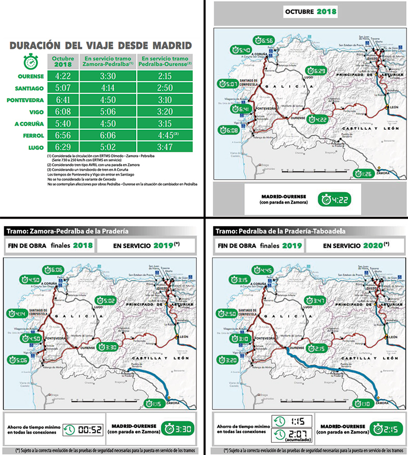 Para asegurar esta reducción de tiempos, se destinarán a Galicia los primeros trenes de alta velocidad de rodadura desplazable que circularán a 300 km/h. El ministro, afirmó su compromiso con la potenciación del Corredor Atlántico que "va a representar un proyecto de cohesión social y territorial para Galicia, Asturias y León”.