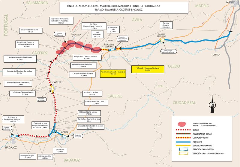 La ejecución del tramo Río Tiétar-Malpartida de Plasencia no condiciona en ningún caso la puesta en servicio de la línea de alta velocidad Madrid-Extremadura en su primera fase, ya que ésta afecta al trayecto Plasencia-Badajoz.