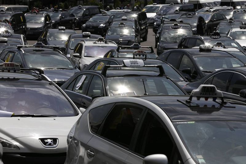 Los taxistas franceses bloquean los accesos a estaciones de tren y aeropuertos en protesta contra Uber