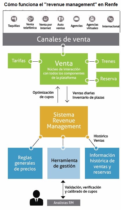 Esquema de la operativa en Renfe del "revenue management" (Fuente Revista "En Punto" de Renfe)
