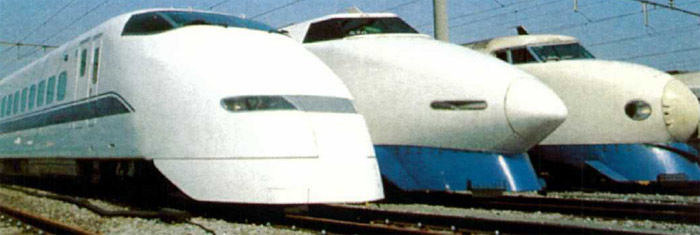 Tres generaciones Shinkansen: de izquierda a derecha, la serie 300, 100 y 0.
