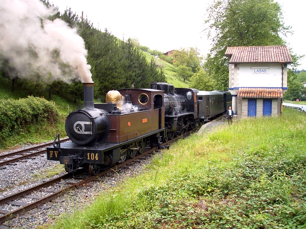Más veterana es la Aurrera, ya que fue construida por la sociedad inglesa Nasmyth & Wilson en 1898 para el ferrocarril de Elgoibar a San Sebastián, integrado en 1906 en la Compañía de los Ferrocarriles Vascongados. Pertenecía a un grupo de diez locomotoras suministradas por la firma de Manchester, entre 1892 y 1898, con un rodaje 130-T. Poco después, el mismo fabricante entregó a los ferrocarriles vascos otras siete locomotoras, de estética muy similar, pero con rodaje 220-T. Tras la electrificación de 1929, muchas fueron vendidas de ocasión, mientras que la Aurrera permaneció en manos de los Ferrocarriles Vascongados, atendiendo la línea de Durango a las minas de Arrázola y Elorrio y, cuando fue definitivamente retirada del servicio de tracción, su caldera se empleó para destilar agua para recargar las baterías de los trenes eléctricos. De hecho, en el inventario que registró el paso del material de la empresa privada a Feve, la Aurrera no figura como locomotora sino como alambique...