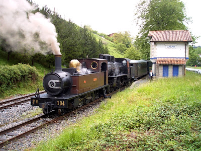 Esta pasada noche comenzó la campaña de las elecciones al Parlamento Vasco, que se celebrarán el próximo 21 de octubre. Aunque la tradicional pegada de carteles parece que va pasando a la historia, cada uno de los partidos en liza ha presentado a la ciudadanía vasca sus candidatos, sus programas y, también, sus eslóganes. Será deformación profesional pero, quien suscribe, tiende a relacionar todo con el ferrocarril y, por tanto, ha sido inevitable que uno de estos eslóganes halla llamado poderosamente mi atención: "Euskadi Aurrera". En efecto, este lema podría reflejarse perfectamente en la imagen que encabeza esta entrada, las locomotoras Euzkadi y Aurrera, de los antiguos Ferrocarriles Vascongados, fotografiadas durante una jornada especial, dando la doble tracción a un tren de viajeros del Museo Vasco del Ferrocarril.
