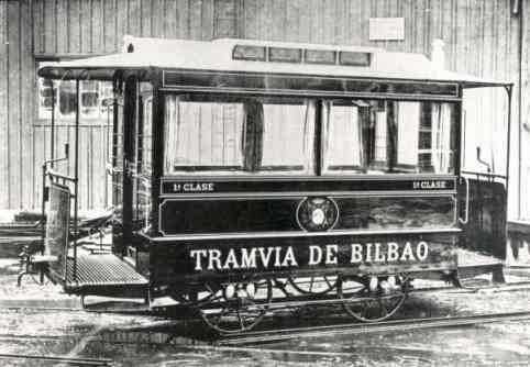 Tranvía Nº 4, antiguo coche de dos ejes, ampliado en 1913 y transformado en coche de bogies. Fotografía de Juan Bautista Cabrera. Archivo EuskoTren/Museo Vasco del Ferrocarril